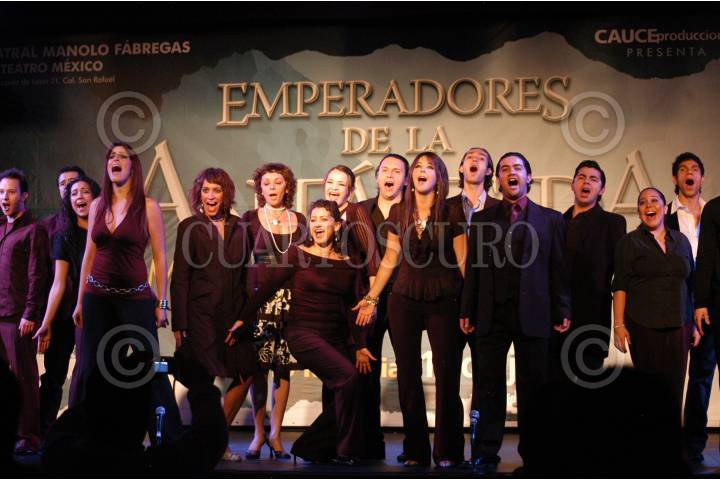 MÉXICO D.F. 10JULIO2007.-Se llevo acabo la presentación del nuevo musical "Emperadores de la Antártida" que se presentara en el teatro Manolo Fabregas apartir del 18 de este mes.En la imagen Georgina Levin y Patricio Borghetti, protagonistas de este musical acompañados de la productora Michelle Griffin, durante la presentación a los medios de comunicación. FOTO: GUILLERMO PEREA/CUARTOSCURO.COM
