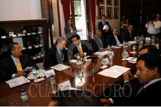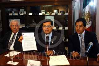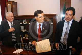 MÉXICO D.F. 11JULIO2007.-Los legisladores locales Miguel Hernández Labastida, Victor Hugo Cirigo, Higinio Morales de estado de México al termino de la reunión que sostubieron con Senadores después de los acuerdos realizados en la Comisión de Asuntos Metropolitanos, esto en la instalaciones del Senado de la República. FOTO: GUILLERMO PEREA/CUARTOSCURO.COM