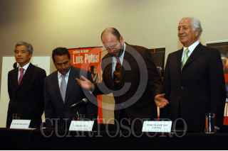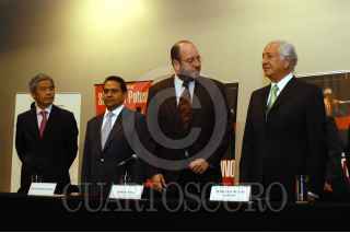 MÉXICO D.F. 11JULIO2007.-Hengming Yin embajador de China en nuestro país, Juan M. Oliva R. Gobernador de Guanajuato, Sergio Vela y Marcelo de los Santos Gobernador de San Luis Potosi dieron aconocer el programa de la edición 35 del Festival Internacional Cervantino, esto en el Palacio de Bellas Artes. FOTO: GUILLERMO PEREA/CUARTOSCURO.COM
