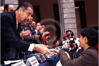 Carlos Abascal Carranza, Secretario del Trabajo, entregó el premio de Investigación Laboral 2001. FOTO: Oswaldo Ramírez/CUARTOSCURO.COM