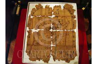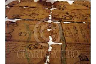XALAPA, VERACRUZ 12JULIO2007.- Los Códigos de San Pedro Chiconquiaco datan de 1542 y 1877, el más antiguo realizado en papel amate (una fibra vegetal), dicho códice permite reconstruir una historia que se inicia en la época prehispánica y que continúa en los primeros años de la Colonia (1521-1810) con la fundación del pueblo de Chiconquiaco (sur de Veracruz) , en el año de 1542.También ofrece información sobre la evangelización, y el otorgamiento de tierras.El códice fue entregado en resguardo a la Universidad Veracruzana por el gobernador de esta entidad. FOTO: JORGE VALDÉS /CUARTOSCURO.COM