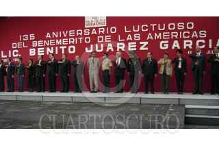 XALAPA, VERACRUZ, 18JULIO2007.- En el parque Juárez se realizó la conmemoración del 135 Aniversario Luctuoso del Benemérito de las Américas, Benito Juárez. El gobernador Fidel Herrera, acompañado de su gabinete, encabezó la ceremonia, y mandó un mensaje en contra de los gobernantes que entregan los recursos del pueblo a intereses extranjeros. FOTO: JORGE VALDÉS/CUARTOSCURO.COM