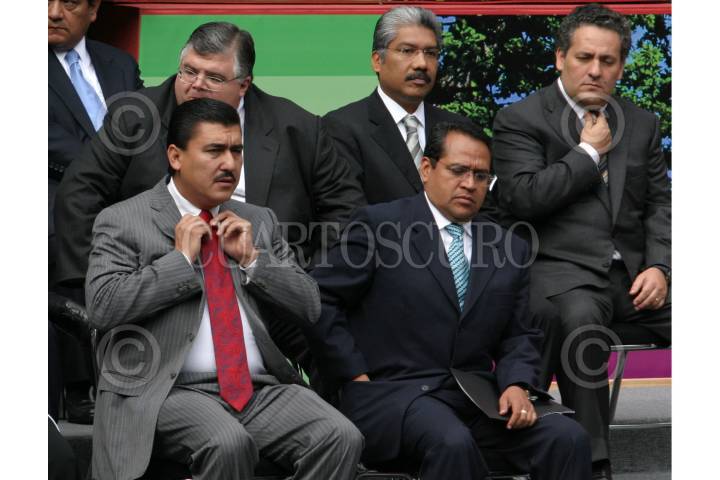 MÉXICO, D.F., 18JULIO2007.- Eduardo Sojo, Secretario de Energía, Ismae Hernández Deras, gobernador de Durango y Mario Marín, gobernador de Puebla, durante la presentación del Plan Nacionalde Infraestructura 2007 por el jefe del ejecutivo en el Palacio Nacional. FOTO: MOISÉS PABLO/CUARTOSCURO.COM