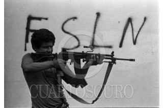MANAGUA NICARAGUA.- Un rebelde del Frente Sandinista de Liberación Nacional apunta su arma durante la Revolución Sandinista, la cual terminó con el régimen dictatorial de Anastasio Somoza. El próximo 19 de julio se cumple el XXVIII Aniversario de la victoria de la Revolución. FOTO: PEDRO VALTIERRA/CUARTOSCURO.COM