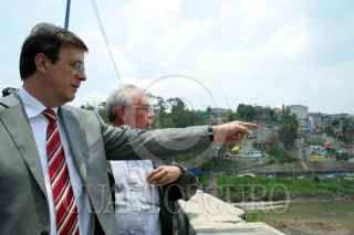 MÉXICO, D.F. 19JULIO2007.- El jefe de gobierno capìtalino, Marcelo Ebrard Casaubón, Miguel Moreno Brizuela, secretario de Protección Civil y Jorge Arganis, secretario de Obras y servicios del GDF durante su visita a la Presa Mixcoac. FOTO: PAOLA HIDALGO/CUARTOSCURO.COM