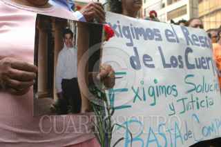 MÉXICO, D.F., 19JULIO2007.- Familiares de los mineros fallecidos en Pasta de Conchos se manifestaron a las afueras de las nuevas oficinas de Grupo Minero México exigiendo no se cierre la mina de Pasta de Conchos y continuen los trabajos de rescate de los cuerpos de sus familiares.. FOTO: SAÚL LÓPEZ/CUARTOSCURO.COM