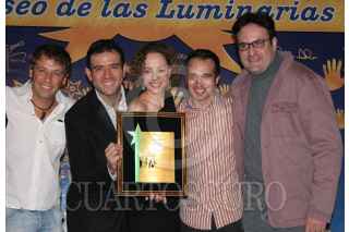 MÉXICO, D.F., 27JULIO2007.- Los actores Juan Manuel Bernal, Héctor Snadarti, Natalia Sosa, Iván Caraza y Alejandro Calva, integrantes del elenco de la obra musical "Los Productores" les entregaron un reconocimiento en Plaza de las Estrella por el exito del montaje. FOTO: IVÁN PEREZCUARTOSCURO.COM