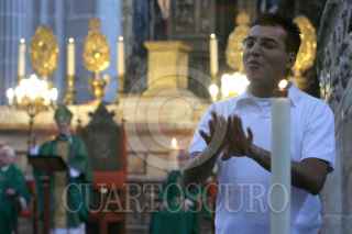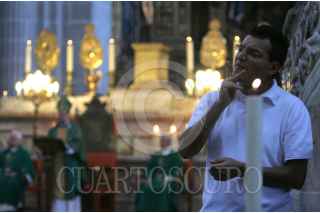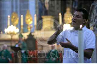MÉXICO, D.F., 29JULIO2007.- Un intérprete traduce la misa dominical de Norberto Rivera para aquellos sordomudos que asistieron a la Catedral Metropolitana. FOTO: ISAAC ESQUIVEL/CUARTOSCURO.COM