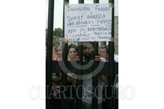 MÉXICO, D.F. 31JULIO2007.- Habitantes de la Unidad Clavijero impidieron el acceso a desalojados del barrio de Tepito. Piden a las autoridades que se les reubique en otra zona. FOTO: PAOLA HIDALGO/CUARTOSCURO.COM
