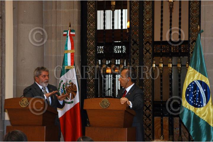 MÉXICO D.F. 06AGOSTO2007.-El presidente de Brasil Luiz Inacio Lula Da Silva, y el jefe de gobierno capitalino, Marcelo Ebrad Casaubón al termino de la ceremonia donde le otorgo las llaves de la ciudad y lo nombro visitante distinguido. FOTO: GUILLERMO PEREA/CUARTOSCURO.COM