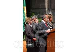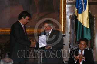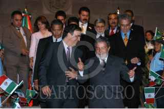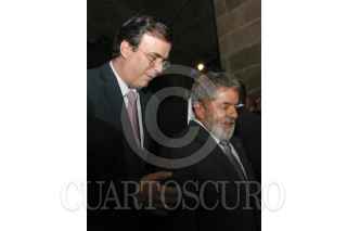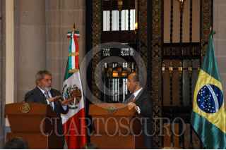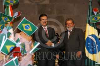 MÉXICO D.F. 06AGOSTO2007.-El presidente de Brasil Luiz Inacio Lula Da Silva, y el jefe de gobierno capitalino, Marcelo Ebrad Casaubón al termino de la ceremonia donde le otorgo las llaves de la ciudad y lo nombro visitante distinguido. FOTO: GUILLERMO PEREA/CUARTOSCURO.COM