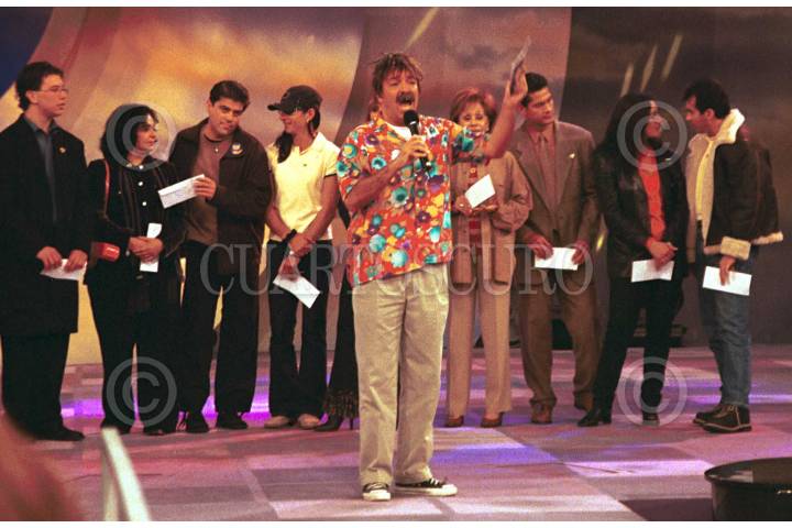 El payaso Brozo junto con Andrés Bustamante y Guillermo Ortega dieron los resultados que se recaudarón en el Teletón 2001 la cual fue de 201millones 945 mil 120 pesos . FOTO:Pedro Mera/CUARTOSCURO.COM