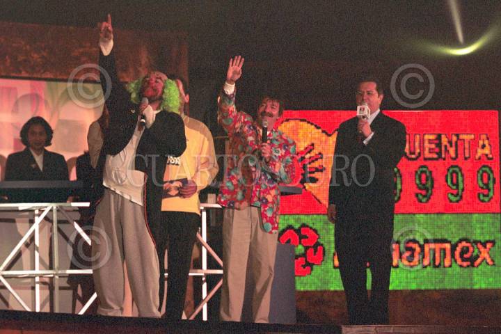 El payaso Brozo junto con Andrés Bustamante y Guillermo Ortega dieron los resultados que se recaudarón en el Teletón 2001 la cual fue de 201millones 945 mil 120 pesos . FOTO:Pedro Mera/CUARTOSCURO.COM