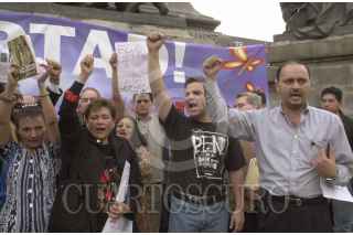 Javier Elorriaga, Rigoberto Avila y Rosario Ibarra en el Dia Internacional de los Derechos Humanos en la delegacion Tlalpan. FOTO:Especial/CUARTOSCURO.COM