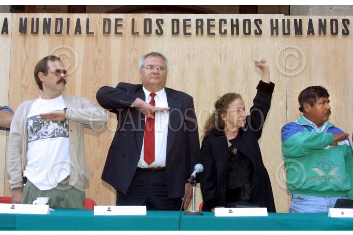 Javier Elorriaga, Rigoberto Avila y Rosario Ibarra en el Dia Internacional de los Derechos Humanos en la delegacion Tlalpan. FOTO:Especial/CUARTOSCURO.COM