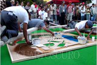 HUAMANTLA, TLAXCALA, 15 AGOSTO 2007.- La noche de ayer se realizó la tradicional fiesta de “la noche que nadie duerme” donde alfombristas de varias partes del mundo se reúnen en esta ocasión en la ciudad de Huamantla para elaborar el llamado “arte efímero” que consiste en la elaboración de alfombras de diferentes materiales y festejar a Vvirgen de la Caridad. FOTO: CARLOS SEOANE/CUARTOSCURO.COM