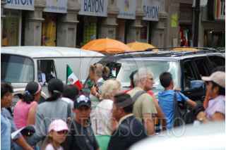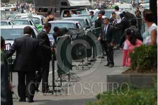 MÉXICO, D.F., 15AGOSTO2007.- Elementos del Estado Mayor Presidencial resguradan la llegada del Presidente de la República, Felipe Calderón Hinojosa, a las instalaciones de la Suprema Corte de Justicia de la Nación, en el centro histórico, donde sustuvo una comida privada con los once ministros. FOTO: CLAUDIA ARÉCHIGA/CUARTOSCURO.COM