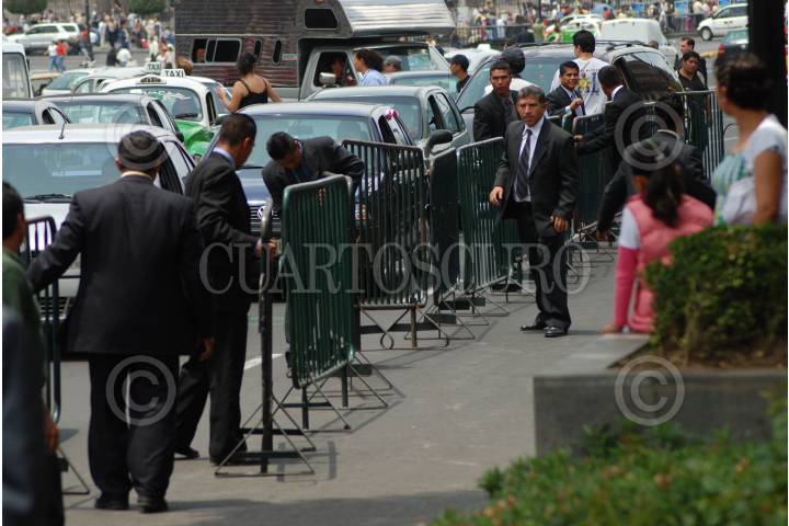 MÉXICO, D.F., 15AGOSTO2007.- Elementos del Estado Mayor Presidencial resguradan la llegada del Presidente de la República, Felipe Calderón Hinojosa, a las instalaciones de la Suprema Corte de Justicia de la Nación, en el centro histórico, donde sustuvo una comida privada con los once ministros. FOTO: CLAUDIA ARÉCHIGA/CUARTOSCURO.COM