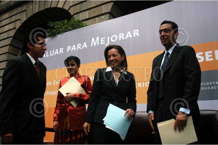 MÉXICO D.F. 16AGOSTO2007.-La titular de la Secretaría de Educación Pública, realizó la presentación del Programa de Evaluación de Directores de Educación Media Superior, esto en las instalaciones de la secretaria.En la imagen una de las asistentes porta un boletín informativo con la leyenda impresa "Aquí se Capacitan Personas de Exito" FOTO: GUILLERMO PEREA/CUARTOSCURO.COM