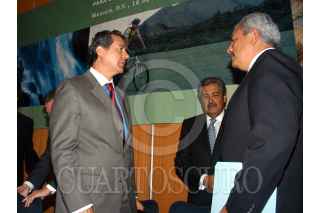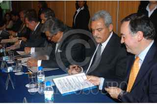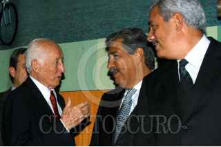 MÉXICO D.F. 16AGOSTO2007.-Luis H. Alvarez Comisionado para los Pueblos Indigenas y el ex-candidato a la gobernatura de Yucatán, Xavier Abreu, a su salida de la firma del Convenio General de Colaboración Interinstitucional para el Desarrollo del Turismo de Naturaleza en México 2007-2012. FOTO:GUILLERMO PEREA/CUARTOSCURO.COM