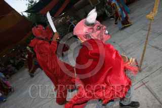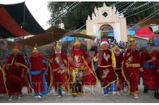 CHOLULA, PUEBLA., 16AGOSTO2007.-En el marco de los festejos por la virgen de la Asunción, se realiza en el poblado de Santa Maria Acuexcomac, el tradicional baile de los Moros contra los Cristianos, representación histórica que simboliza el proceso de evangelización y las luchas por unificar al mundo en una sola religión. FOTO: EZEQUIEL TLAXCALA/CUARTOSCURO.COM