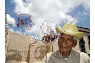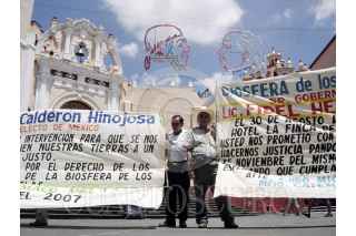 XALAPA, VERACRUZ 21AGOSTO2007.- Pobladores de varios ejidos en la región selvatica de los Tuxtlas, denuncian el despojo de sus tierras y piden que se les regresen para cosechralas y cuidarlas de la deforestación.En la imagen se muestra el rostro de uno de los pobladores que se manifiesta, teniendo de fondo las images de José Ma. Morelos y Miguel Hidalgo. FOTO: JORGE VALDÉS/CUARTOSCURO.COM