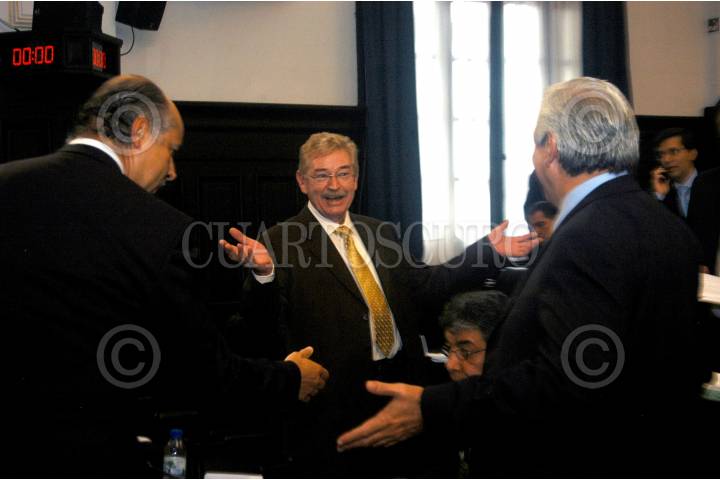 MÉXICO D.F. 22AGOSTO2007.-El Dputado del PAN Hector Larios y el Senador del mismo partido Santiago Creel Miranda, durante la sesión de la Permanete en el Senado de la República. FOTO: GUILLERMO PEREA/CUARTOSCURO.COM