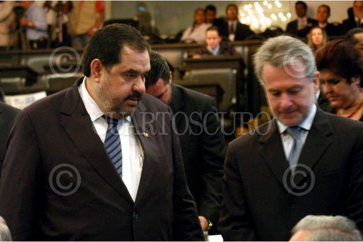 MÉXICO D.F. 22AGOSTO2007.-El Dputado del PAN Hector Larios y el Senador del mismo partido Santiago Creel Miranda, durante la sesión de la Permanete en el Senado de la República. FOTO: GUILLERMO PEREA/CUARTOSCURO.COM