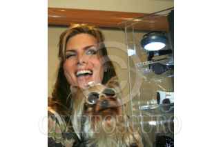 MÉXICO, D.F. 22AGOSTO2007.- La conductora Monserrat Oliver, acompañada de su mascota "Diva", presentó su nueva linea de lentes, próximamente saldrá al mercado una colección de lentes para perros. FOTO: PAOLA HIDALGO/CUARTOSCURO.COM