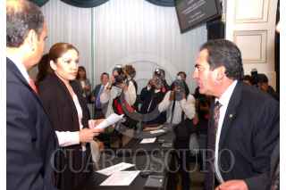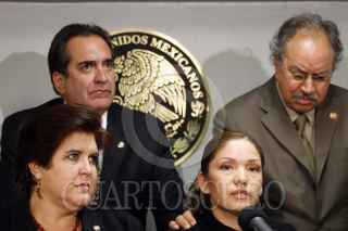 MEXICO, D.F. 22AGOSTO2007.- Los legisladores Teresa Ortuño, Jesus Humberto Zapata y Carlos Lozano acompañarona en conferencia de prensa a Elvira Arellano, deportada deportada de los Estados Unidos hace un par de días, fue recibida en el pleno de la sesión permanente. FOTO: CUARTOSCURO.COM