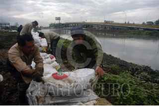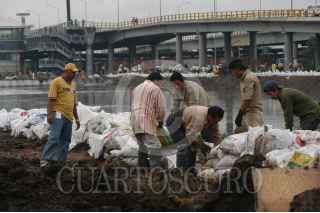 ECATEPEC EDO. DE MÉX. 23AGOSTO2007.-Trabajadores del SAPASE, continuan colocando costales con tepetate esto para evitar otro posible desbordamiento del Río de los Remedios. FOTO: GUILLERMO PEREA/CUARTOSCURO.COM