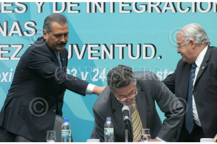 MÉXICO, D.F. 23AGOSTO2007.- Manlio Fabio Beltrones, jefe de la mesa directiva en la Cámara de senadores, Jorge Ocejo Moreno, vicepresidente del parlamento latinoamericano y Jorge Pizarro Soto, presidente del parlamento latinoamericano en el senado durante una reunión con legisladores latinoamericanos que se llevó a cabo en el recinto de Xicoténcatl. FOTO: PAOLA HIDALGO/CUARTOSCURO.COM