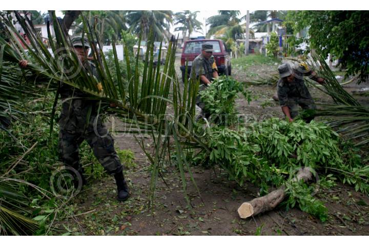 CASITAS, VERACRUZ 23AGOSTO2007.- Elementos del ejercito adscritos al plan DN3-E asi como pobladores quitan arboles y escombros ocacionados por el paso del Huracan "Dean" en las costas del estado de Veracruz. FOTO: SAÚL LÓPEZ/CUARTOSCURO.COM