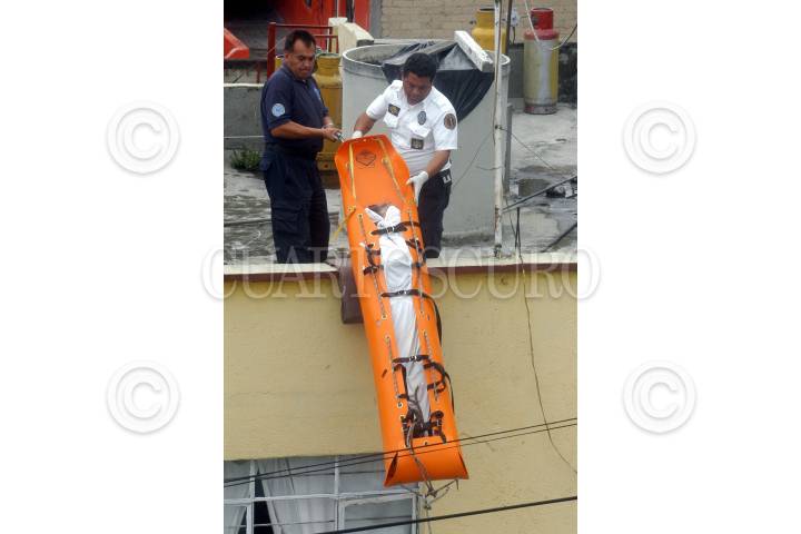 MEXICO, D.F., 23AGOSTO2007.- Una mujer de aproximadamente 75 años, se suicido ahogandose en el interior del tinaco de su edificio, según el reporte policiaco, los hechos se suscitarón en la calle de Norte 21 y Oriente 122 colonia Nueva Vallejo. Elementos del ERUM bajaron el cadaver en un camilla deslizandolo con cuerdas por un costado. FOTO:PEDRO MARRUFO/CUARTOSCURO.COM