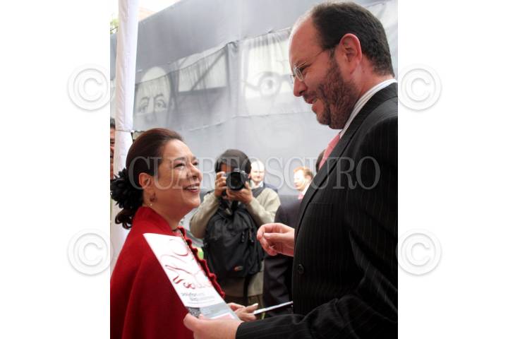 MÉXICO, 23AGOSTO2007.- El delegado en Benito Juárez, Germán de la Garza Estrada, María Teresa Franco, directora del INBA, Sergio Vela, presidente de Conaculta,y Adriana Alfaro, hija del muralista David Alfaro Siqueiros, durante la develación del mural "Homenaje al Cincuentenario del Momvimiento Muralista Mexicano", realizado por el artista mexicano. FOTO: ISAAC ESQUIVEL/CUARTOSCURO.COM