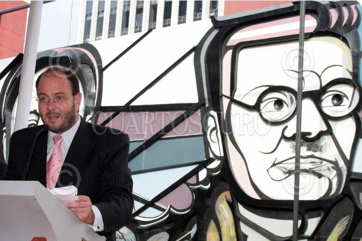 MÉXICO, 23AGOSTO2007.- El delegado en Benito Juárez, Germán de la Garza Estrada, María Teresa Franco, directora del INBA, Sergio Vela, presidente de Conaculta,y Adriana Alfaro, hija del muralista David Alfaro Siqueiros, durante la develación del mural "Homenaje al Cincuentenario del Momvimiento Muralista Mexicano", realizado por el artista mexicano. FOTO: ISAAC ESQUIVEL/CUARTOSCURO.COM
