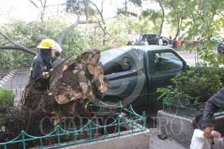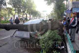 MEXICO, D.F., 28AGOSTO2007.-Sobre la avenida Chapultepec y la calle de Salamanca un arbol cayó sobre dos autos estacionado, sin presentarse ningún lesionado, elementos de los bomberos se dieron a la tarea de retirarlo. FOTO:PEDRO MARRUFO/CUARTOSCURO.COM