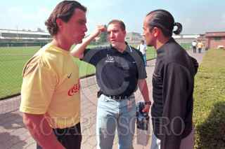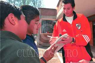 Alberto "Flaco" Macias, firma autógrafos al término del entrenamiento de las Aguilas del América. FOTO: Pedro Mera/CUARTOSCURO.COM