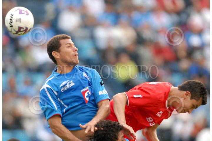 MÉXICO,DF.,29AGOSTO2007.- Miguel Sabah, jugador del equipo Cruz Azul, se disputa el balón con un jugador de los Diablos Rojos del Toluca, en el partido correspondientes a la fecha 5 del torneo de Apertura 2007, en el Estadio Azul. FOTO:SASHENKA GUTIERREZ/CUARTOSCURO.COM