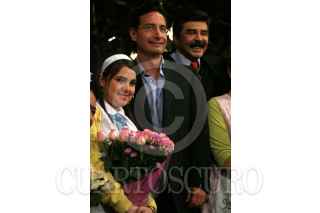 MÉXICO, D.F. 29AGOSTO2007.- El elenco de la serie televisiva Una familia de diez grabó el último capítulo de la primera temporada en Televisa San Ángel. Los actores Jorge Ortiz de Pinedo, Mariana Botas y el productor Roberto Gómez Fernández durante el programa. FOTO: PAOLA HIDALGO/CUARTOSCURO.COM