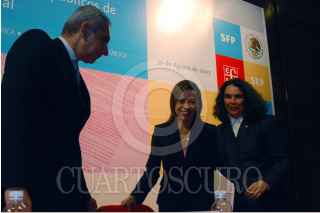 MÉXICO, D.F. 30AGOSTO2007.- Salvador Vega Casillas, subsecretario de la función pública, Josefina Vazquez Mota, secretaria de educación pública y Carmen Saizar, durante la firma de convenio de colaboración para la profesionalización y mejora de los servidores públicos de la administración pública federal. FOTO: CLAUDIA ARÉCHIGA/CUARTOSCURO.COM