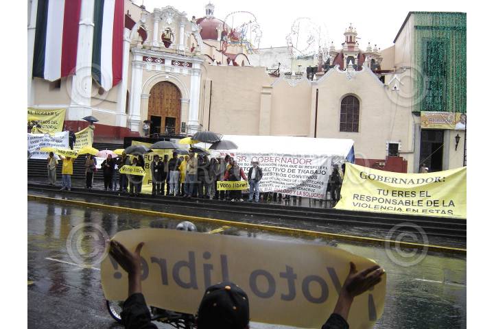 XALAPA, VERACRUZ 30AGOSTO2007.- El senador perredista, Arturo Herviz, encabezó una mafestación en la Plaza Lerdo para pedir a los ciudadanos salir a votar libremente el 2 de septiembre, también exigen al gobierno federal sacar las manos del proceso y responsabilizan a Fidel Herrera de la violencia que se pudiera generar en la jornada electoral. FOTO: JORGE VALDÉS/CUARTOSCURO.COM