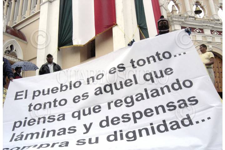 XALAPA, VERACRUZ 30AGOSTO2007.- El senador perredista, Arturo Herviz, encabezó una mafestación en la Plaza Lerdo para pedir a los ciudadanos salir a votar libremente el 2 de septiembre, también exigen al gobierno federal sacar las manos del proceso y responsabilizan a Fidel Herrera de la violencia que se pudiera generar en la jornada electoral. FOTO: JORGE VALDÉS/CUARTOSCURO.COM