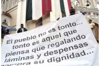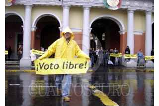 XALAPA, VERACRUZ 30AGOSTO2007.- El senador perredista, Arturo Herviz, encabezó una mafestación en la Plaza Lerdo para pedir a los ciudadanos salir a votar libremente el 2 de septiembre, también exigen al gobierno federal sacar las manos del proceso y responsabilizan a Fidel Herrera de la violencia que se pudiera generar en la jornada electoral. FOTO: JORGE VALDÉS/CUARTOSCURO.COM