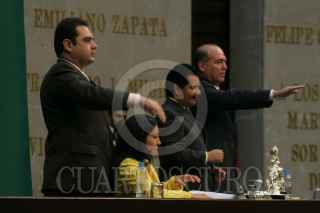 MÉXICO, D.F. 30AGOSTO2007.- Hoy se eligió la nueva directiva en la Cámara de Diputados. Los coordinadores parlamentarios, Hector Larios, PAN, Javier González Garza, PRD y Emilio Gamboa Patrón PRI durante la sesión. FOTO: PAOLA HIDALGO/CUARTOSCURO.COM