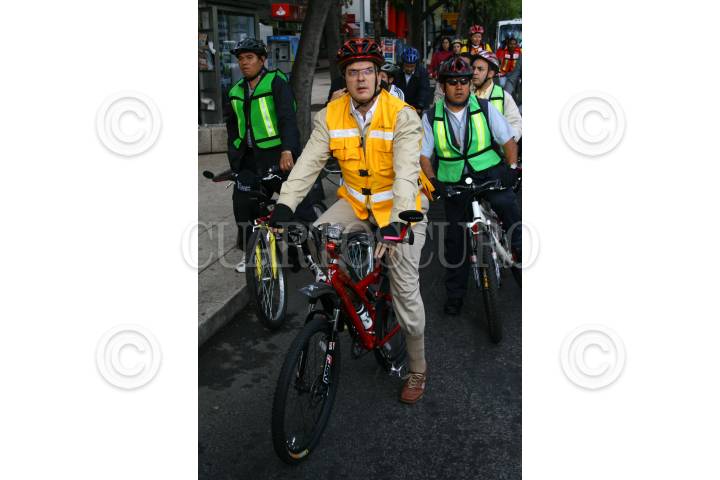 MÉXICO, D.F.,03SEPTIEMBRE2007.- Marcelo Ebrard Casaubón, jefe de gobierno capitalino reaizó un recorrido en bicicleta de su casa a la sede del Gobierno del Distrito Federal. FOTO:SASHENKA GUTIRREZ/CUARTOSCURO.COM