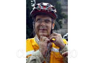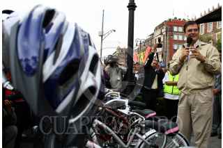 MÉXICO, D.F.,03SEPTIEMBRE2007.- Una policia da el paso a ciclistas que acompañaron en su recorrido en bicicleta a Marcelo Ebrard Casaubón. FOTO:SASHENKA GUTIERREZ/CUARTOSCURO.COM
