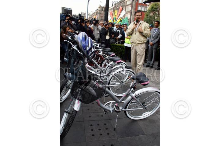 MÉXICO, D.F.,03SEPTIEMBRE2007.- Una policia da el paso a ciclistas que acompañaron en su recorrido en bicicleta a Marcelo Ebrard Casaubón. FOTO:SASHENKA GUTIERREZ/CUARTOSCURO.COM