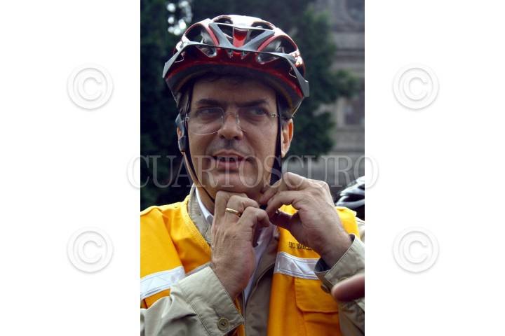 MÉXICO, D.F.,03SEPTIEMBRE2007.- Una policia da el paso a ciclistas que acompañaron en su recorrido en bicicleta a Marcelo Ebrard Casaubón. FOTO:SASHENKA GUTIERREZ/CUARTOSCURO.COM