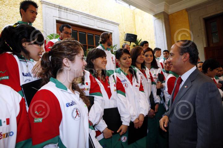 MÉXICOD,F.,03SEPTIEMBRE2007.- El Presidente Felipe Calderón durante la foto con deportistas en la entrega de estimulos a medallistas panamericanos en rio de janeiro 2007 FOTO:ALFREDO GUERRERO /CUARTOSCURO.COM